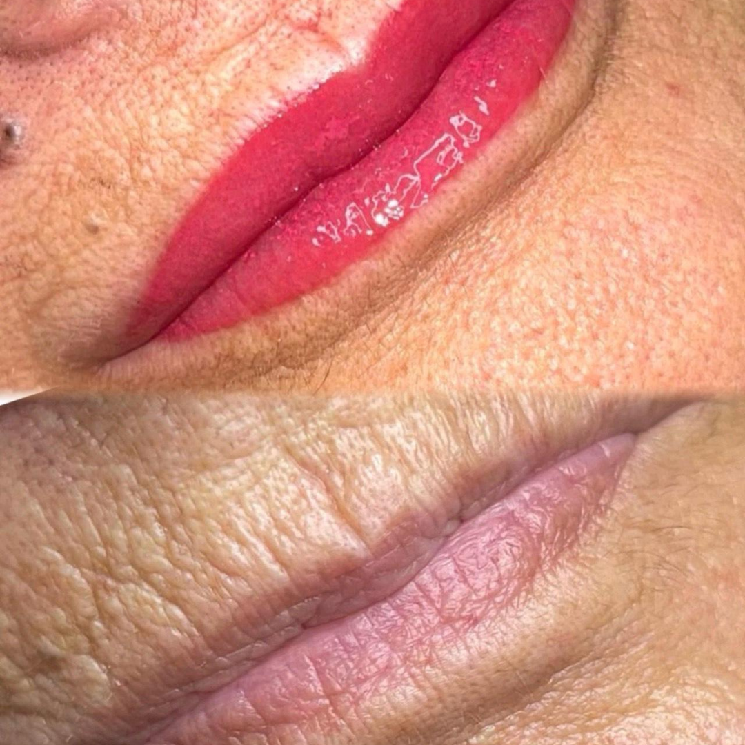 Durante los primeros días, los labios se pelan y el color es irregular y se pierde casi por completo, pero tras un mes, más o menos, el pigmento vuelve a revelarse de manera natural. (No te podrás pintar los labios durante este periodo de recuperación, pero vamos, que tampoco lo vas a necesitar).